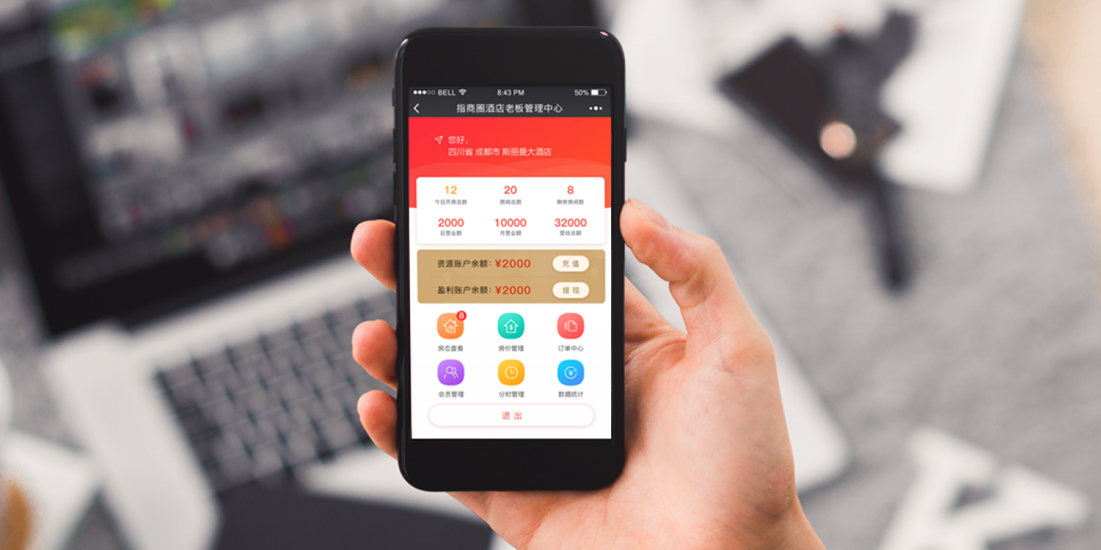 老板可以用手机远程管理自己的酒店,财务状况、房间状况、入住情况、会员状况等,轻松掌握酒店的运营情况